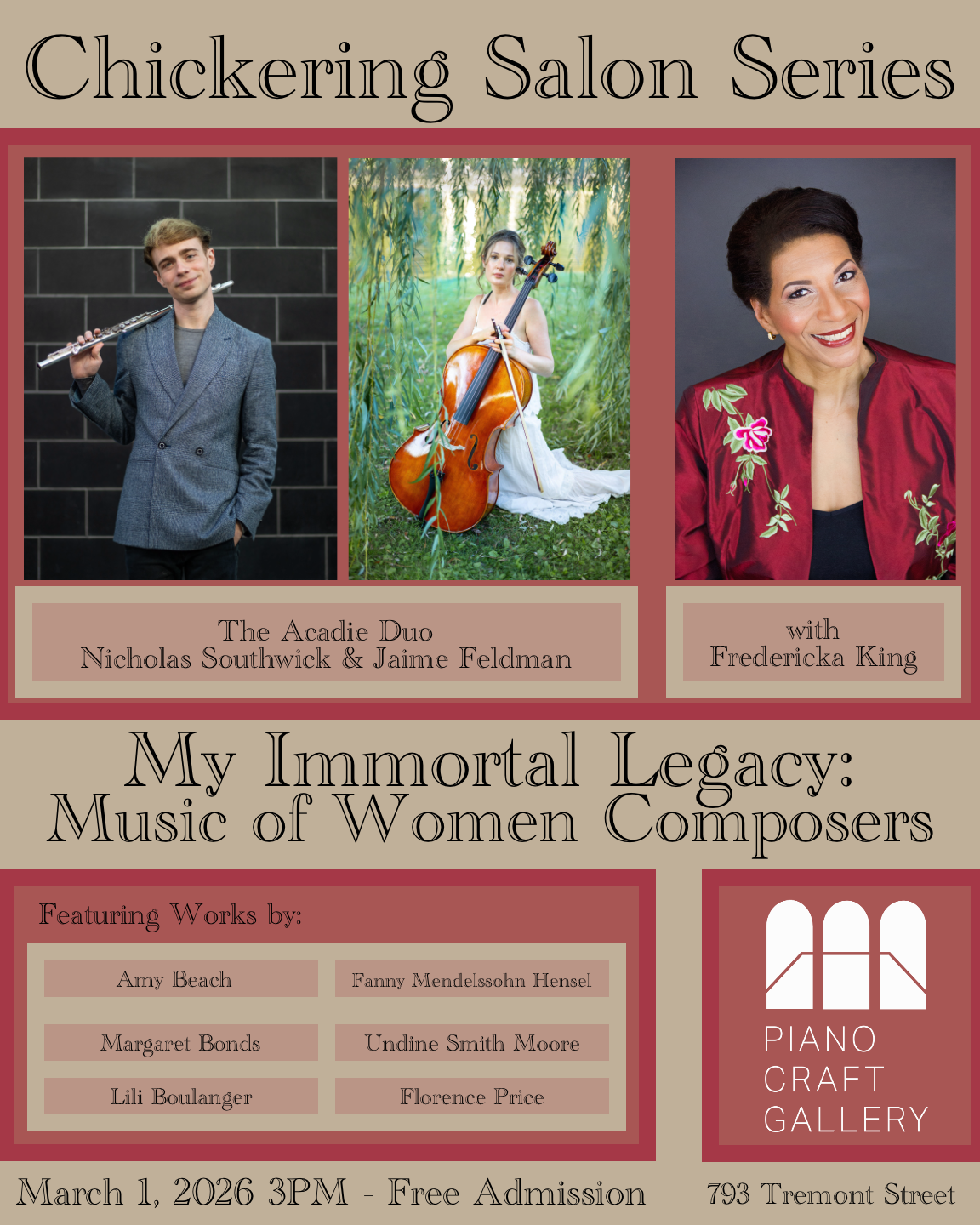 Chickering Salon Series: "My Immortal Legacy: Music of Women Composers"