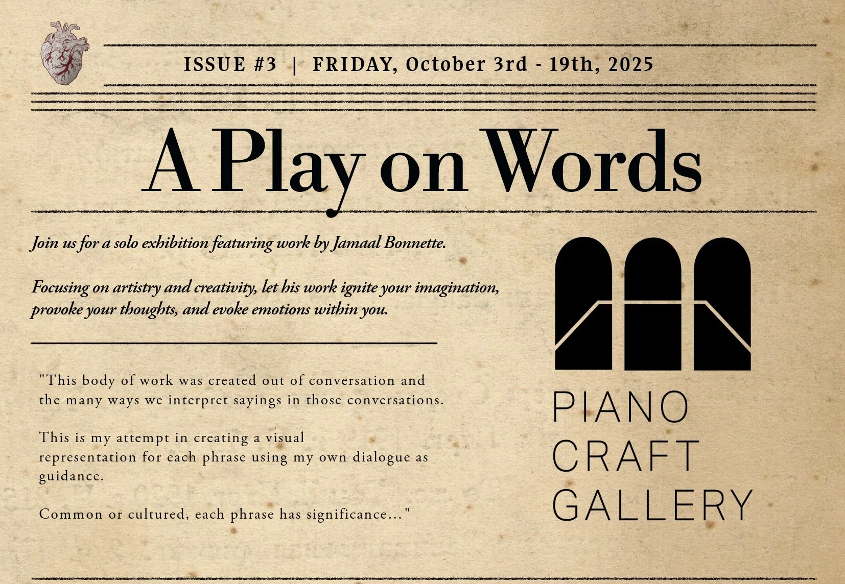 Gallery Hours: Fridays 6-8PM, Saturdays 12-5PM, Sundays 12-5PM