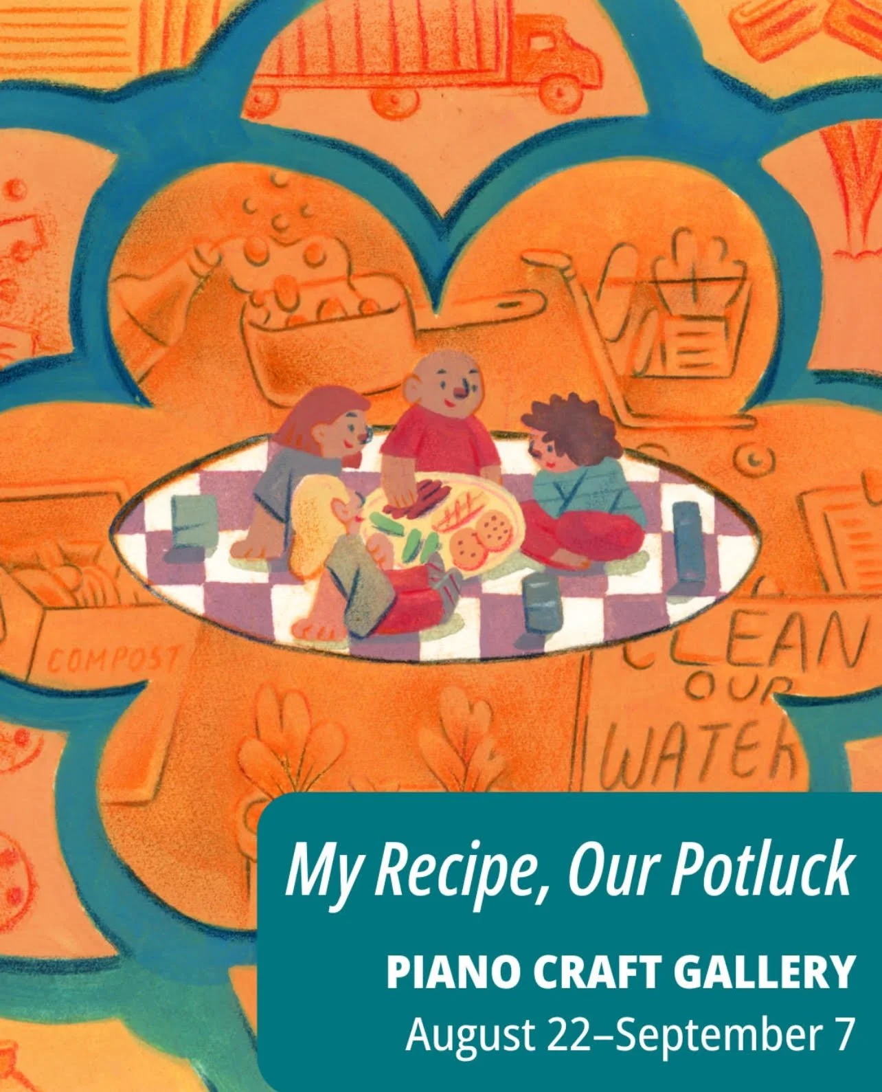 My Recipe, Our Potluck explores how our communities view cultural resilience and resistance through a lens of food and gathering. Using food as a storytelling vessel, Yuko Okabe and Teen Artists collected stories from each other and from community members through interactive workshops and translated those stories and observations into illustrated works.