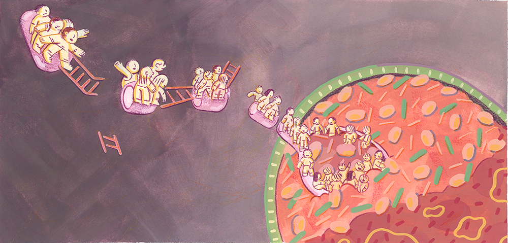 Food has long sparked a spectrum of discourse focusing on nostalgia, scarcity, politics, history, artistry, and more. “Breaking bread” and meeting for a meal crosses various cultures, stories, and meanings. If we think of food as something that people share, consume, and digest, how can we ruminate on stories in a similar way?